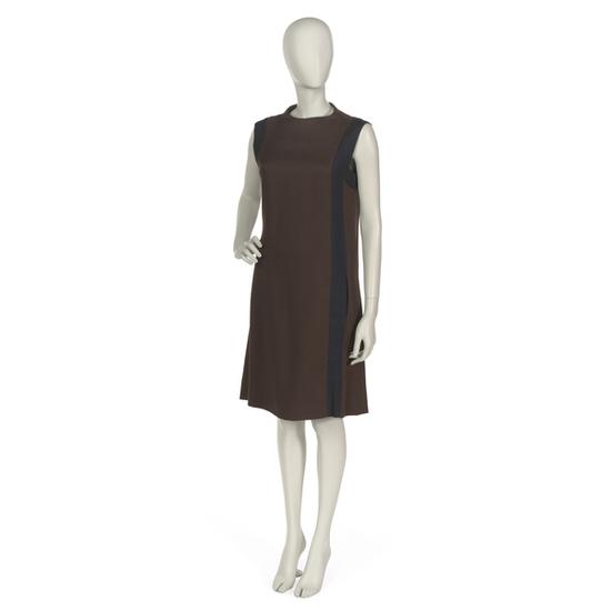 Dress comprising blouse and skirt in raw umber and black fine gauge herringbone worsted wool