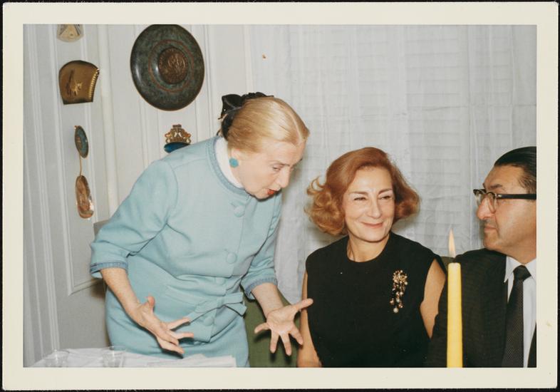 [Solomon Shapiro surrounded by his friends at a dinner party.]