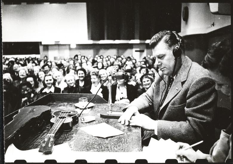 America's Man Godfrey [Arthur Godfrey hosting and playing the ukulele on his radio show.]