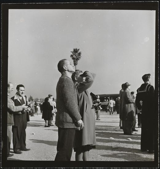 Aqueduct Race Track [Audience in the grandstand at a racetrack.]