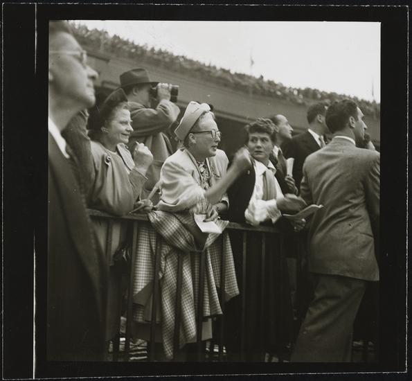 Aqueduct Race Track [Audience in the grandstand at a racetrack.]