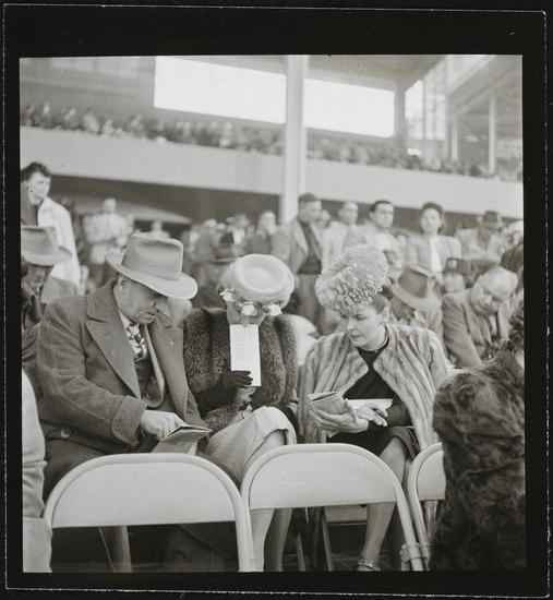 Aqueduct Race Track [Audience in the grandstand at a racetrack.]