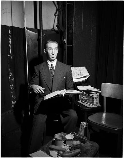 [Actor with Marc Connelly on the set of "The Green Pastures".]