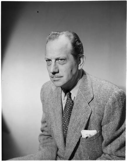 [Haila Stoddard and Melvyn Douglas rehearsing for "Glad Tidings".]