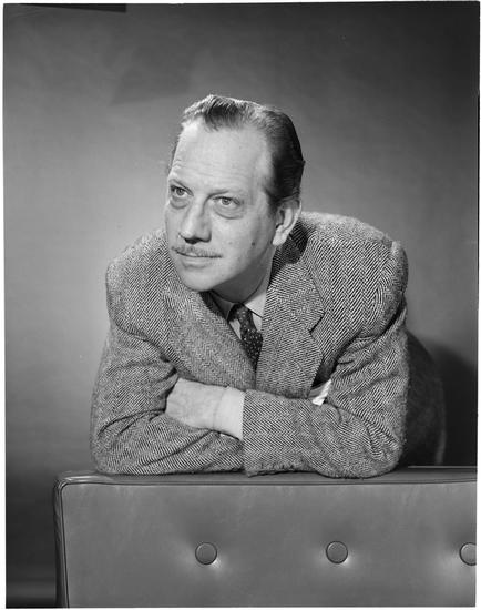 [Haila Stoddard and Melvyn Douglas rehearsing for "Glad Tidings".]