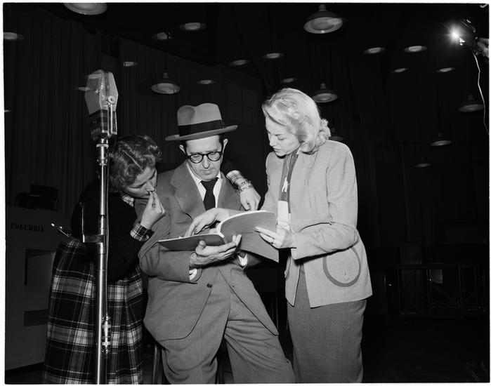 [Ted "Sport" Morgan and Phil Silvers at a recording session for "Top Banana".]