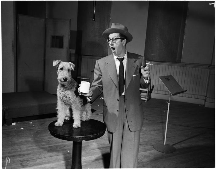 [Ted "Sport" Morgan at a recording session for "Top Banana".]