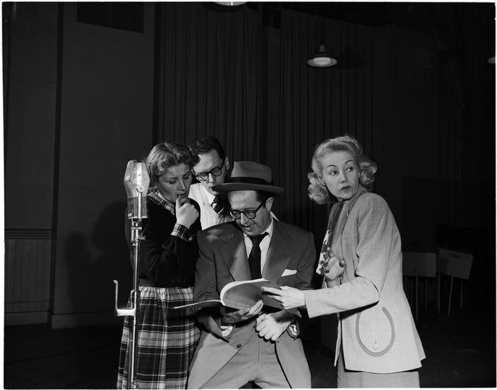 [Ted "Sport" Morgan and Phil Silvers at a recording session for "Top Banana".]