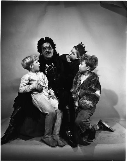 [Lawrence Tibbett as Captain Hook and Veronica Lake as Peter Pan.]