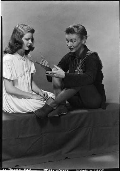 [Peggy O'Hara as Wendy and Veronica Lake as Peter Pan.]