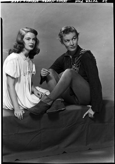 [Peggy O'Hara as Wendy and Veronica Lake as Peter Pan.]