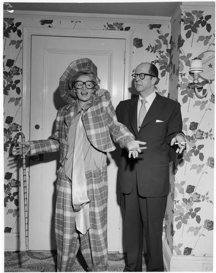 [Phil Silvers, Paula Stone and Bert Lahr at a party for "Top Banana".]