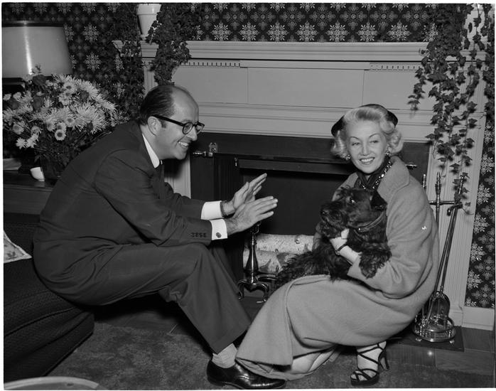 [Paula Stone, Phil Silvers and Mike Sloane backstage at "Top Banana".]