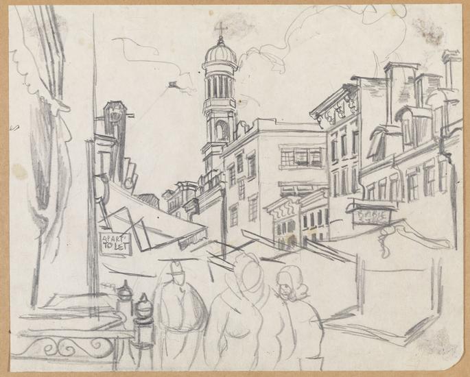 Greenwich Village, N.Y., showing south side of Bleecker Street between MacDougal (right) and Sullivan Streets.
