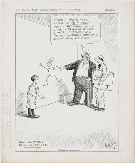 Mr. Milquetoast is asked by a Californian and a New Yorker if he is going to the World's Fair.