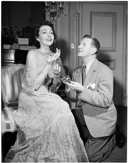 [Lynn Bari and Glenn Anders in "Light Up the Sky".]