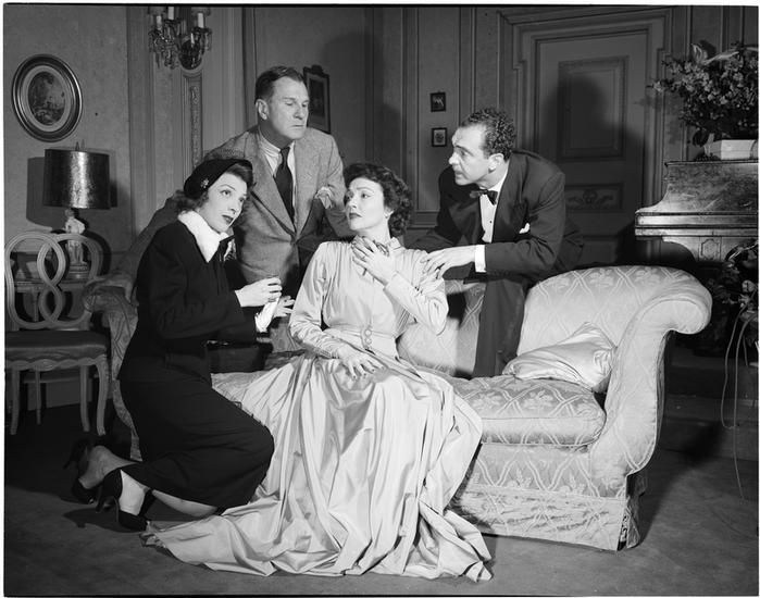 [Lynn Bari and Glenn Anders in "Light Up the Sky".]