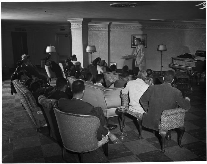 [Hall Johnson with choir on the set of "The Green Pastures".]