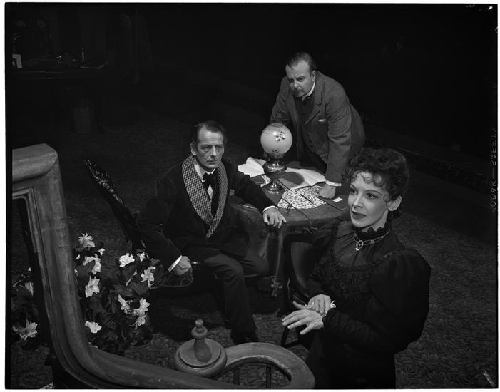 [Signe Hasso, Michael Shepley and Robert Harris in "Edwina Black".]