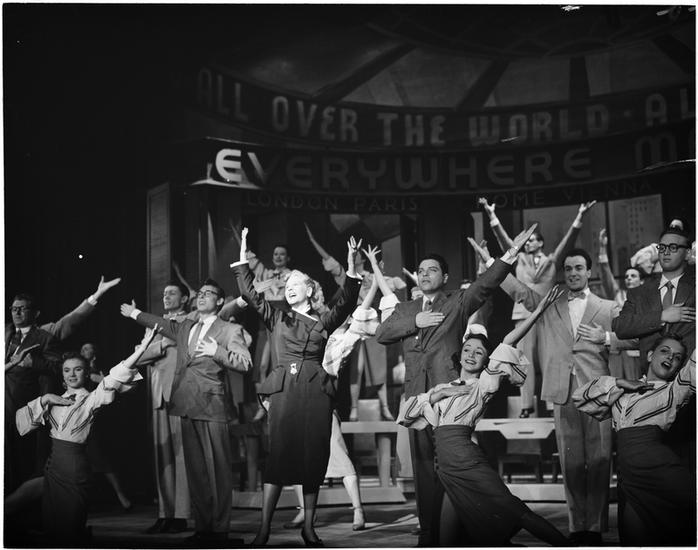 ["Hazel Flagg" theater still.]