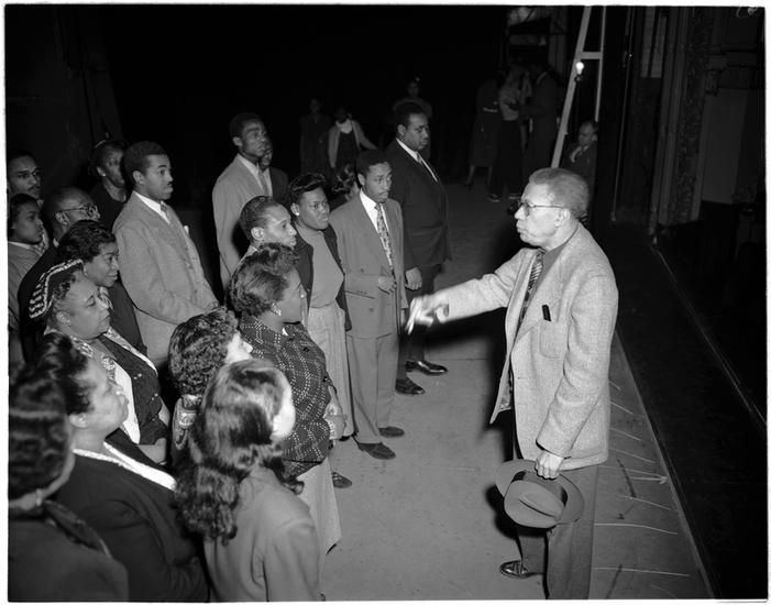[Hall Johnson speaking to performers.]