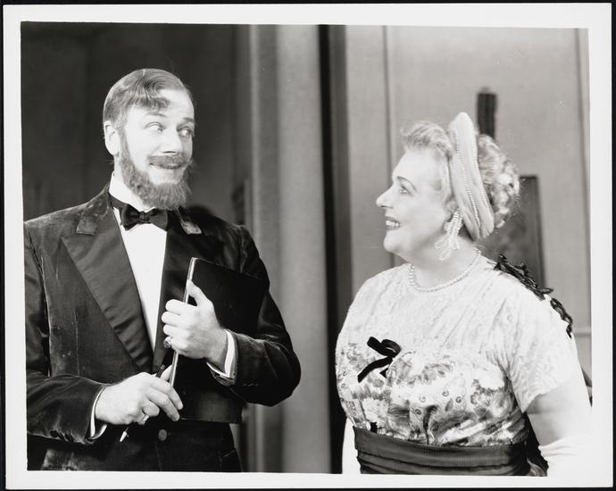 [Isabel Jeans as Mrs. Emmeline Lucas and Cyril Ritchard as Georgie Pillson in "Make Way for Lucia".]