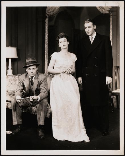 [Myron McCormick as Spike McManus, Kay Francis as Mary Matthews and Ralph Bellamy as Grant Matthews in "State of the Union".]