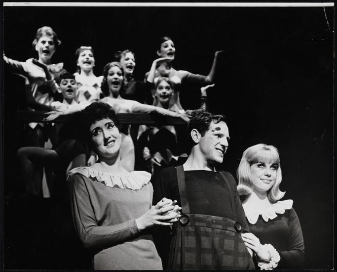 [Julie Newmar and Joel Grey in the touring production of "Stop the World - I Want to Get Off".]