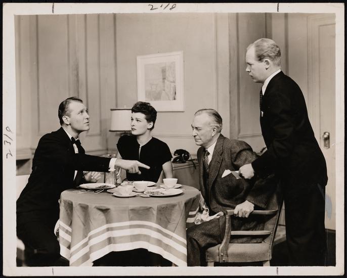 [Myron McCormick as Spike McManus, Ruth Hussey as Mary Matthews and Ralph Bellamy as Grant Matthews in "State of the Union".]