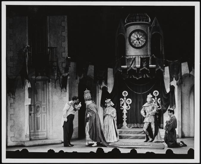 [Peter Ustinov as The General and Edward Atienza as The Archbishop in "Romanoff and Juliet".]