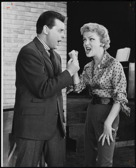 [David Wayne as Jack Jordan and Vivian Blaine as Irene Lovelle in "Say, Darling".]