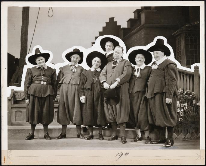 [Ray Middleton as Washington Irving with Citizens of New Amsterdam in "Knickerbocker Holiday".]
