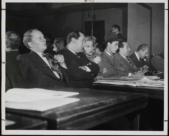 [Phil Silvers, Paula Stone and Bert Lahr at a party for "Top Banana".]