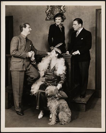 [Roger Livesey as Mr. Burdon, Colonel as Patsy and Claudia Morgan as Victoria Thomson in "Storm Over Patsy".]