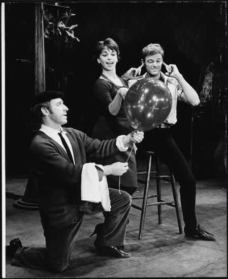 [Keith Michell as Nestor-Le-Fripe and Elizabeth Seal in the title role of "Irma La Douce".]