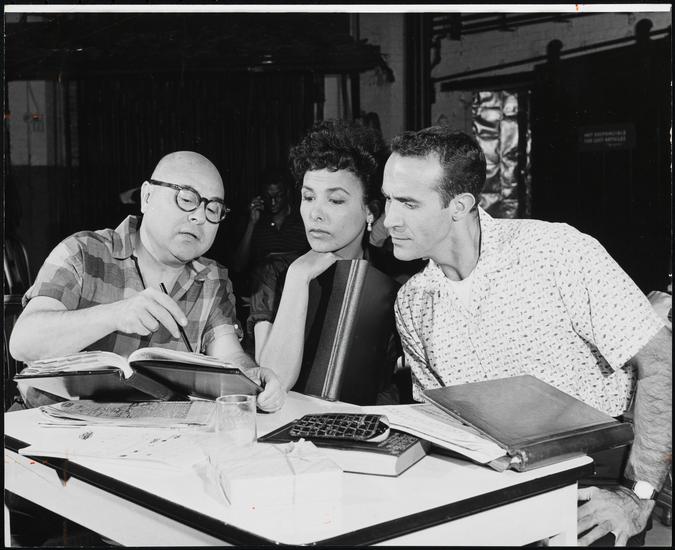 [Richard Rodgers and Joe Layton at a rehearsal for "No Strings".]