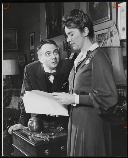 [Ralph Bellamy as Franklin Delano Roosevelt and Anne Seymour as Mrs. Sara Delano Roosevelt in "Sunrise at Campobello".]