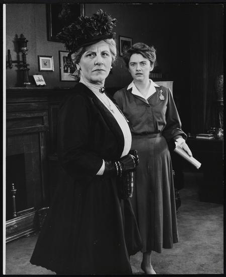 [Ralph Bellamy as Franklin Delano Roosevelt and Anne Seymour as Mrs. Sara Delano Roosevelt in "Sunrise at Campobello".]