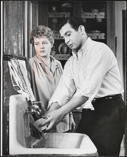 [Ben Gazzara as Johnny Pope and Shelley Winters as Celia Pope in "A Hatful of Rain".]