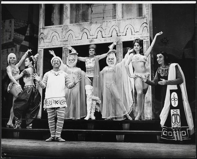 ["A Funny Thing Happened on the Way to the Forum" theater still.]
