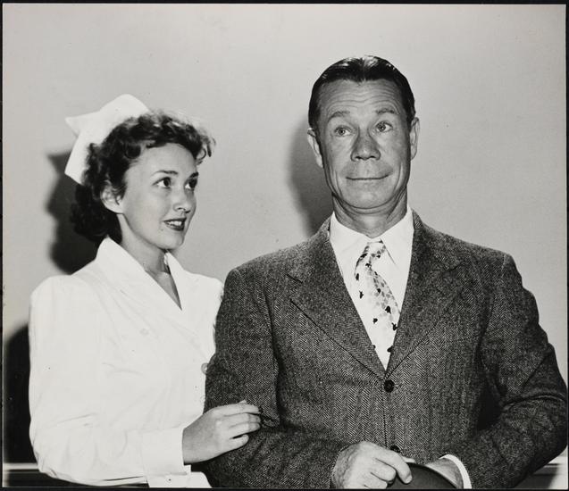 [James Dunn as Elwood P. Dowd and Mary Cooper as Ruth Kelly, R.N. in "Harvey".]