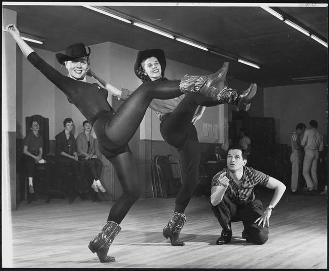[Chorus girls in "Destry Rides Again".]