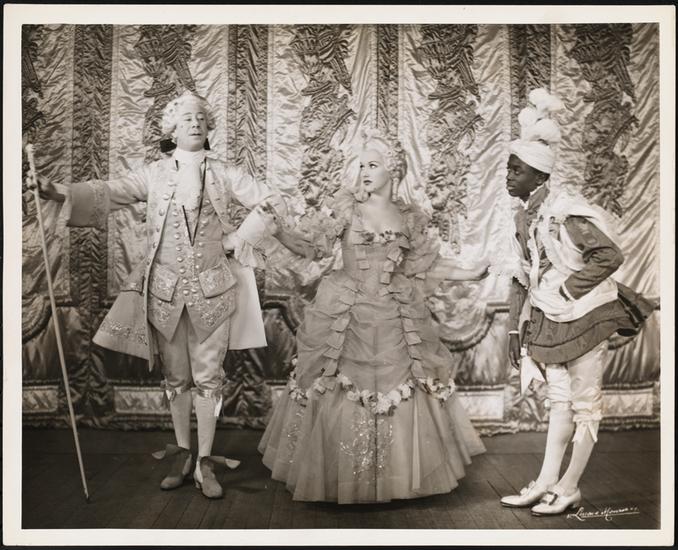 [Ethel Merman as May Daly, possibly Hugh Cameron as Jones and Bert Lahr as Louis Blore in "Du Barry Was a Lady".]