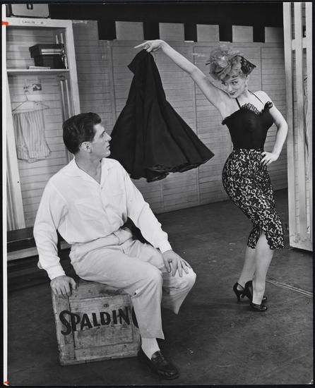 [Gwen Verdon as Lola and Stephen Douglass as Joe Hardy during "Whatever Lola Wants (Lola Gets)" in "Damn Yankees".]