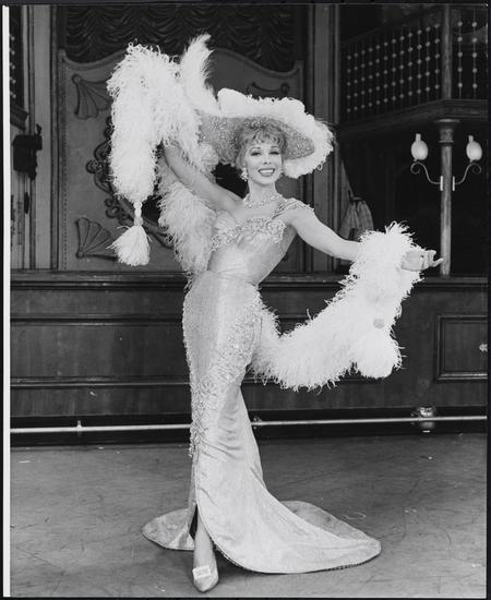 [Dolores Gray as Frenchy with her girls in "Destry Rides Again".]