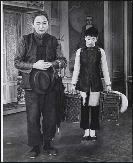 [Juanita Hall as Madam Liang, Cely Carrillo as Mei Li and Keye Luke as Wang Chi Yang in "Flower Drum Song".]