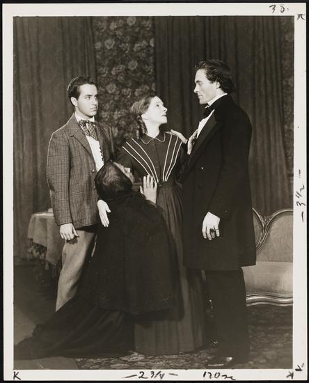 [Helen Hayes as Harriet Beecher Stowe and Rhys Williams as Calvin Stowe in "Harriet".]