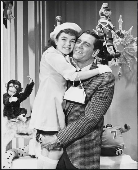 [Valerie Lee as Susan Walker and Laurence Naismith as Mr. Kris Kringle in "Here's Love".]