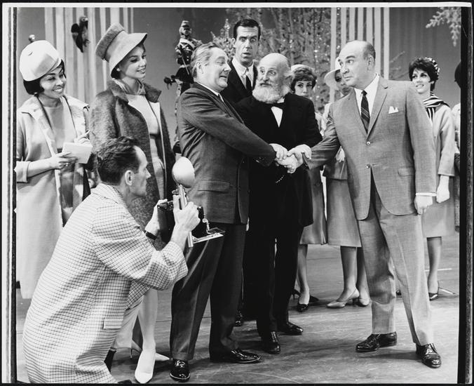 [Laurence Naismith as Mr. Kris Kringle in "Here's Love".]