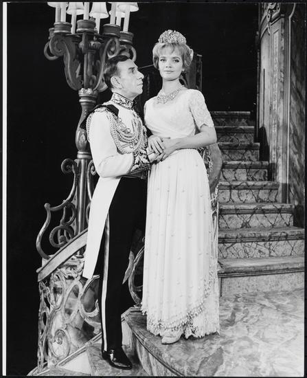 [José Ferrer as Grand Duke Charles and Florence Henderson as Mary Morgan in "The Girl Who Came to Supper".]